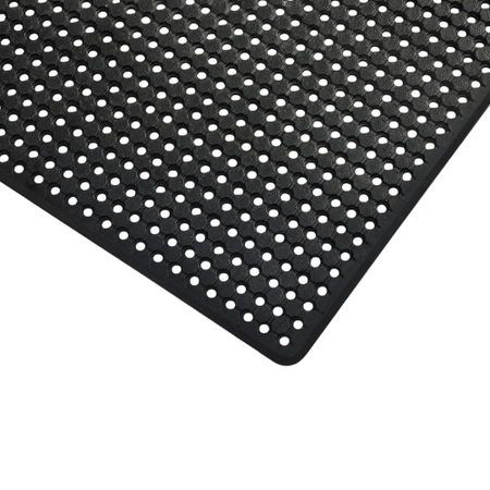 The standout feature of this mat lies in its integrated drainage system: strategically placed holes and channels rapidly disperse water, oil, and debris, keeping the surface dry and clean. This not only improves grip but also reduces the risk of slips, trips, and falls. Additionally, the 120cm x 180cm version comes with bevelled edging, adding an extra layer of trip resistance and making it easy for wheeled traffic to roll over.